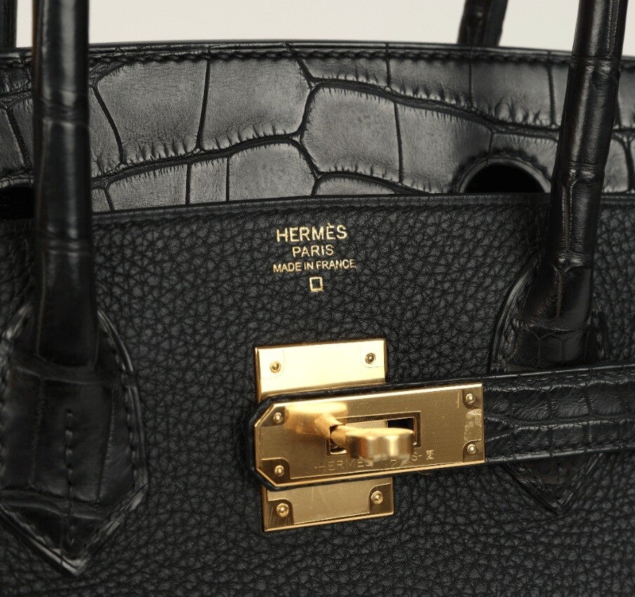 termes Birkin 30 Black Toga and Matte Alligator Touch Gold Hardware
