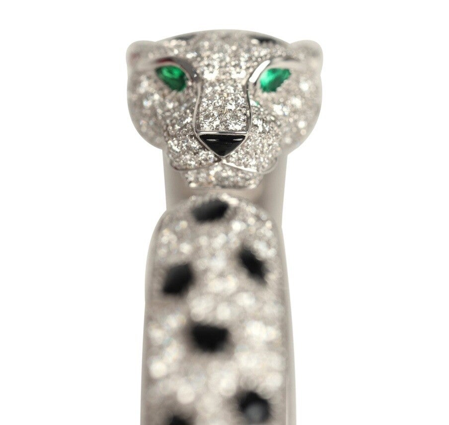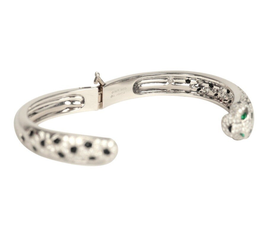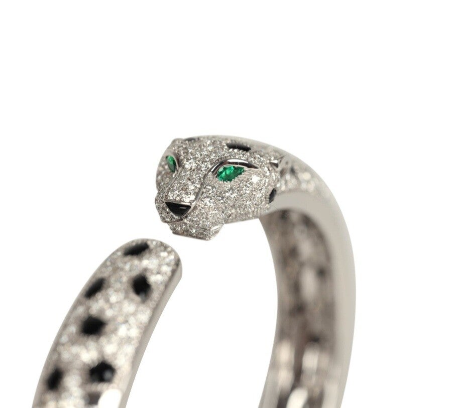 Cartier Panthere De Cartier Medium Half-Pave Bracelet Onyx & Diamonds 18K White Gold Hardware