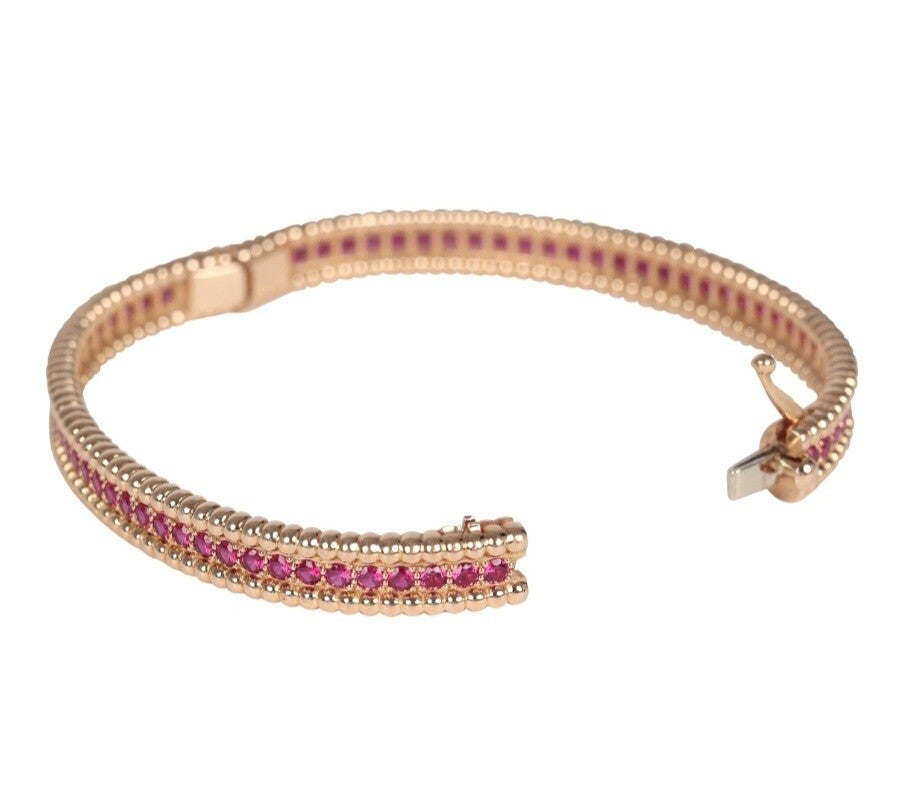 Van Cleef & Arpels X-Smal Perlee Ruby Bracelet Diamonds & 18K Rose Gold Hardware