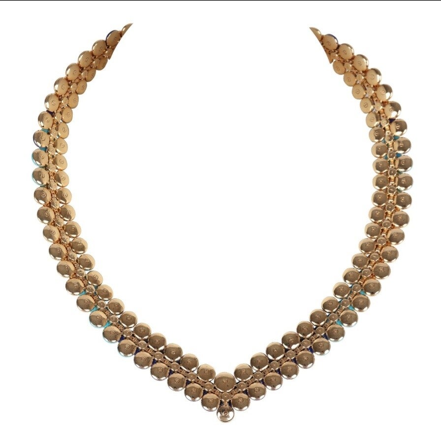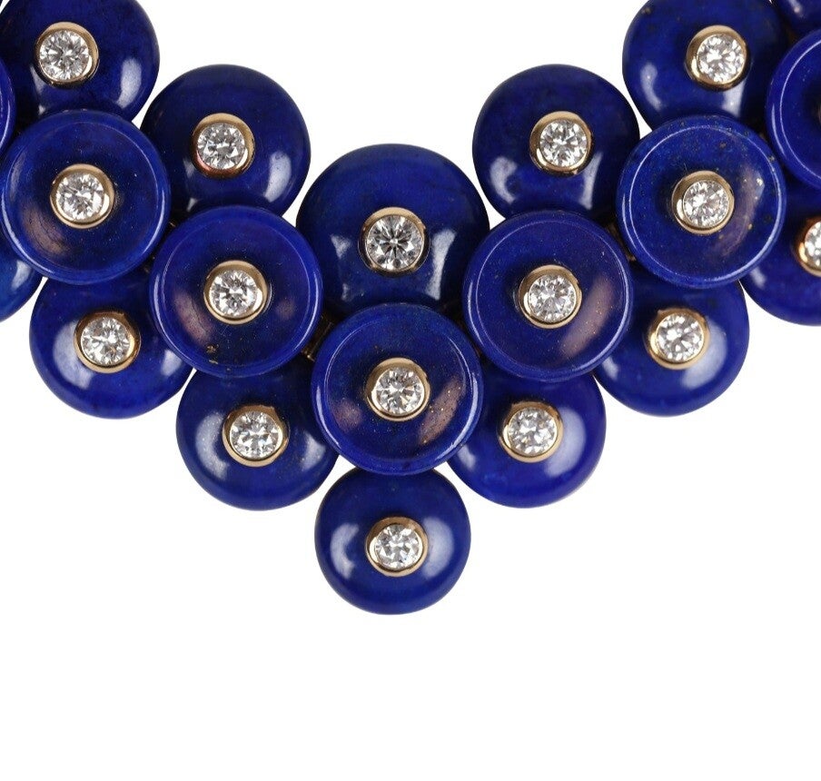 Van Cleef & Arpels Bouton D'Or Necklace Turquoise Lapis Lazuli and Diamonds & Yellow 18K Gold Hardware