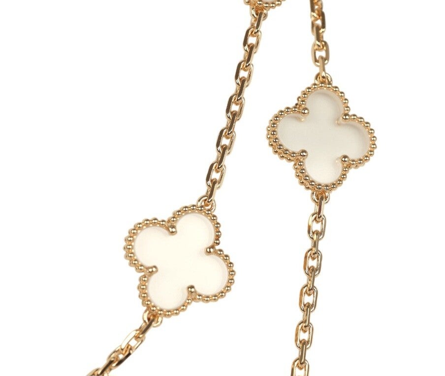 Van Cleef & Arpels Vintage Alhambra Clear Rock Candy Crystal 20 Motif Necklace 18K Yellow Gold
