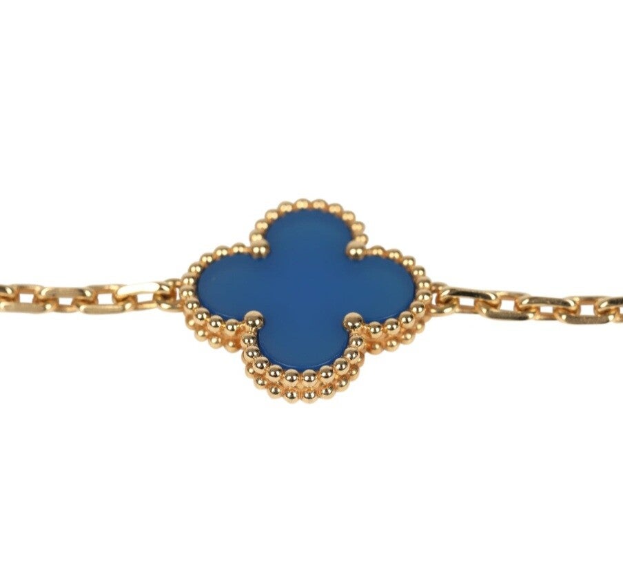 Pre-owned Van Cleef & Arpels Vintage Alhambra 5 Motif Bracelet Blue Agate 18K Yellow Gold Hardware