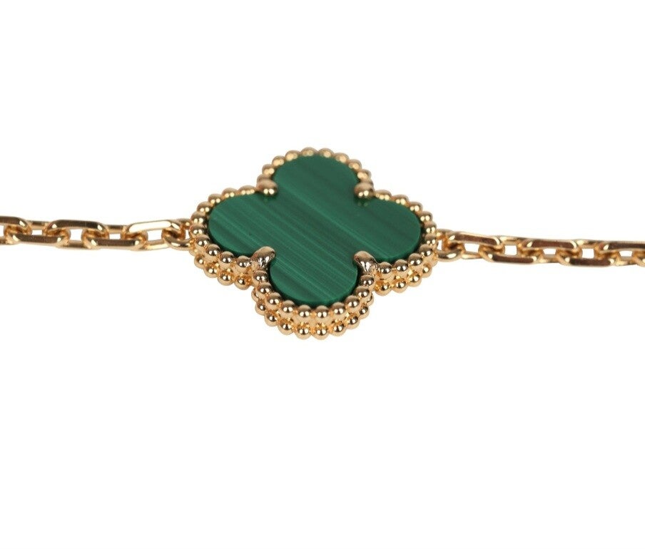 Van Cleef & Arpels Vintage Alhambra 5 Motif Bracelet Malachite 18K Yellow Gold Hardware