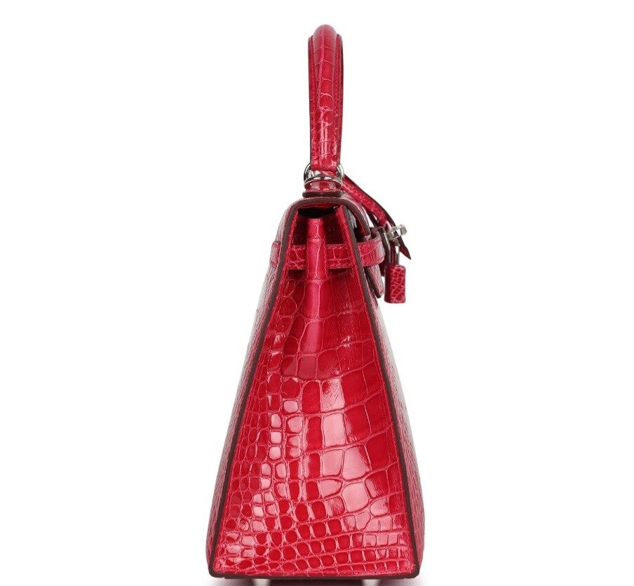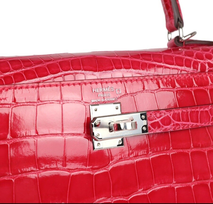 Hermes Kelly Sellier 25 Rose Extreme Shiny Alligator Palladium Hardware